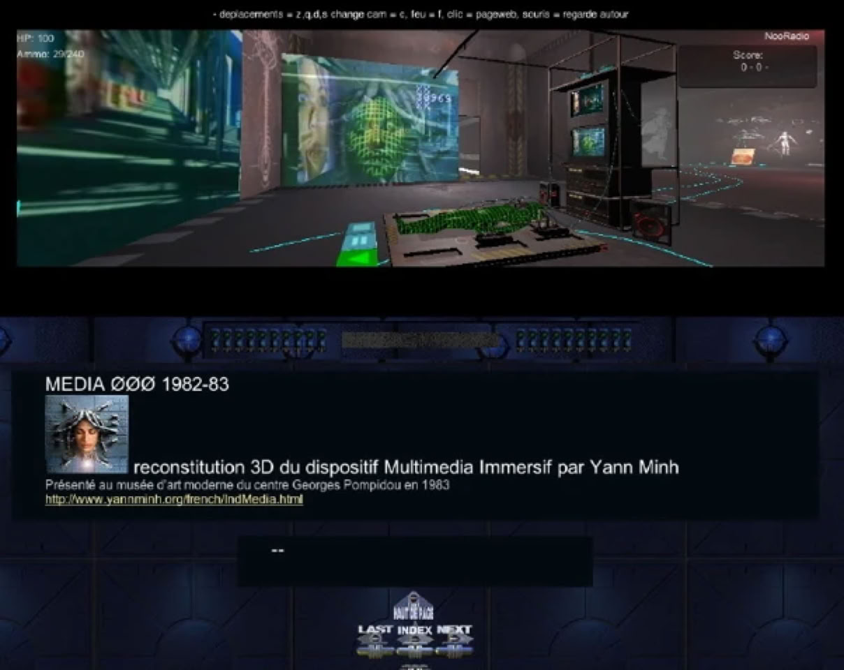 Reconstitution en 3d temps réel de l'installation immersive Multimedia Media ØØØ, présentée au centre Georges Pompidou en 1983.