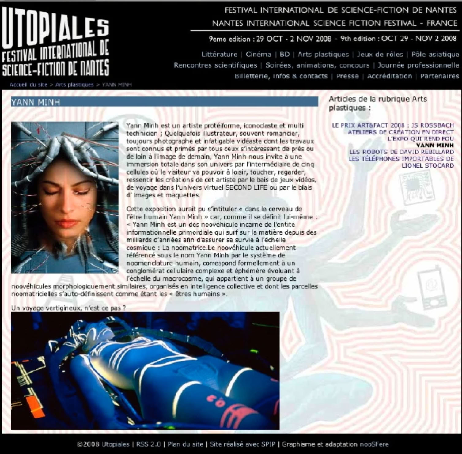 Presentation of the NøøMuseum at the canceled Utopiales science fiction festival in Nantes from October 29 to November 2, 2008. Invited by Art&fact.