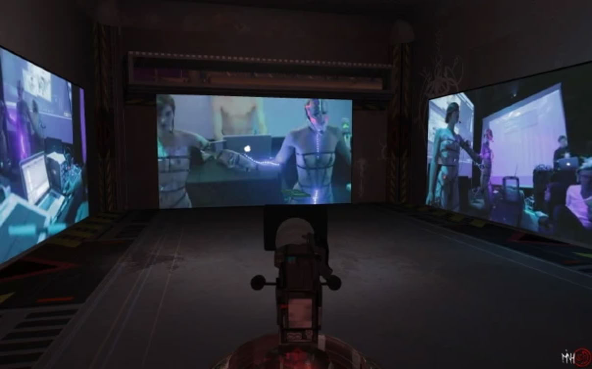 Reconstitution en 3d temps réel de l'installation immersive Multimedia Media ØØØ, présentée au centre Georges Pompidou en 1983.