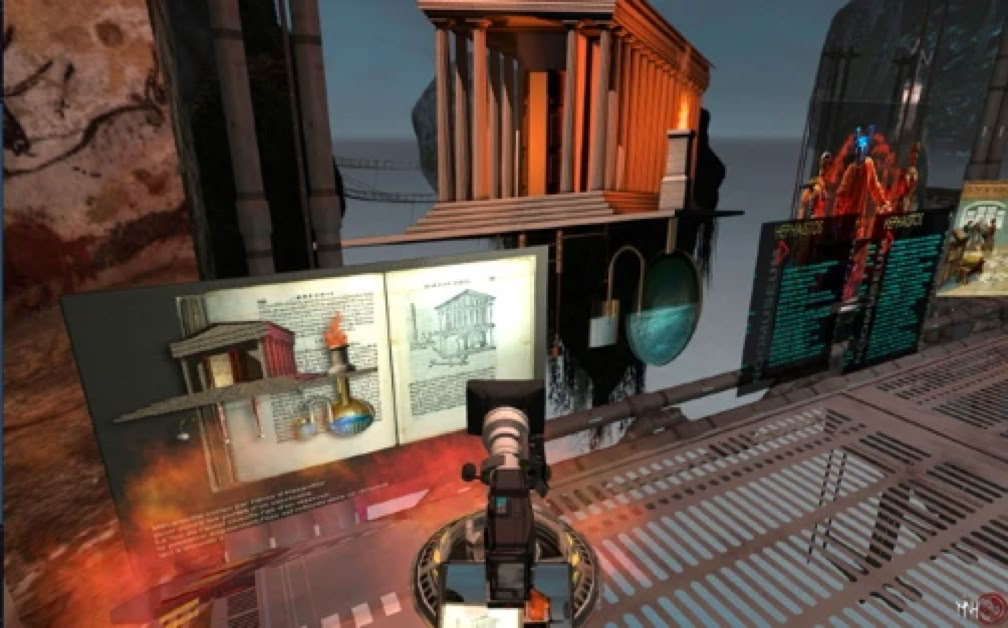 http://www.stratecollege.fr/ Course on the history and prehistory of cyberculture in real-time 3D using virtual topomnesis for students of Strate College and CNAM, Through a group journey in a virtual educational space inspired by ars mémorativa techniques adapted to video games.